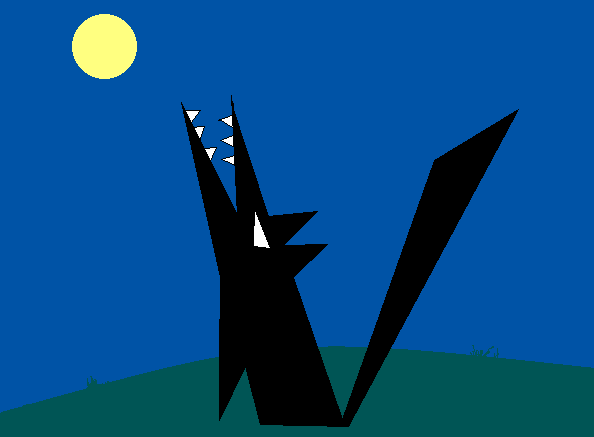 是披著夜色的漆黑、尖銳的三角形組合(尤其是牙齒)