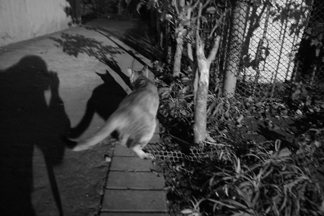 這是隻在夜市附近遇到的喵咪,不怕人,靠近還會對人喵喵叫